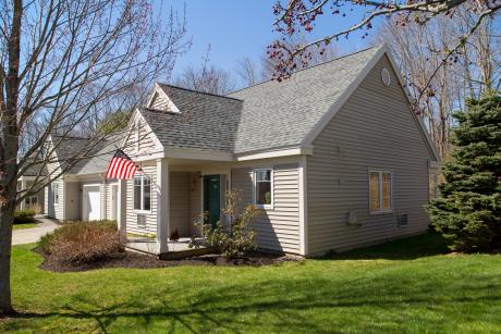 Situated higher on the hill with pretty views and a private garden, this two bedroom, one and half bath cottage represents great value. The inviting interior has been upgraded with beautiful hardwood oak floors and is certain to make you feel at home. An expansive walk-in, wheelchair accessible bath adds to the safety and convenience of living at home.